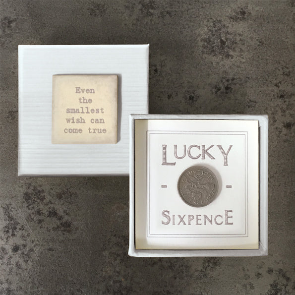 A perfect keepsake for the bride-to-be. This will be a treasured wedding gift or momento of your day - a lucky sixpence in a charming small box.